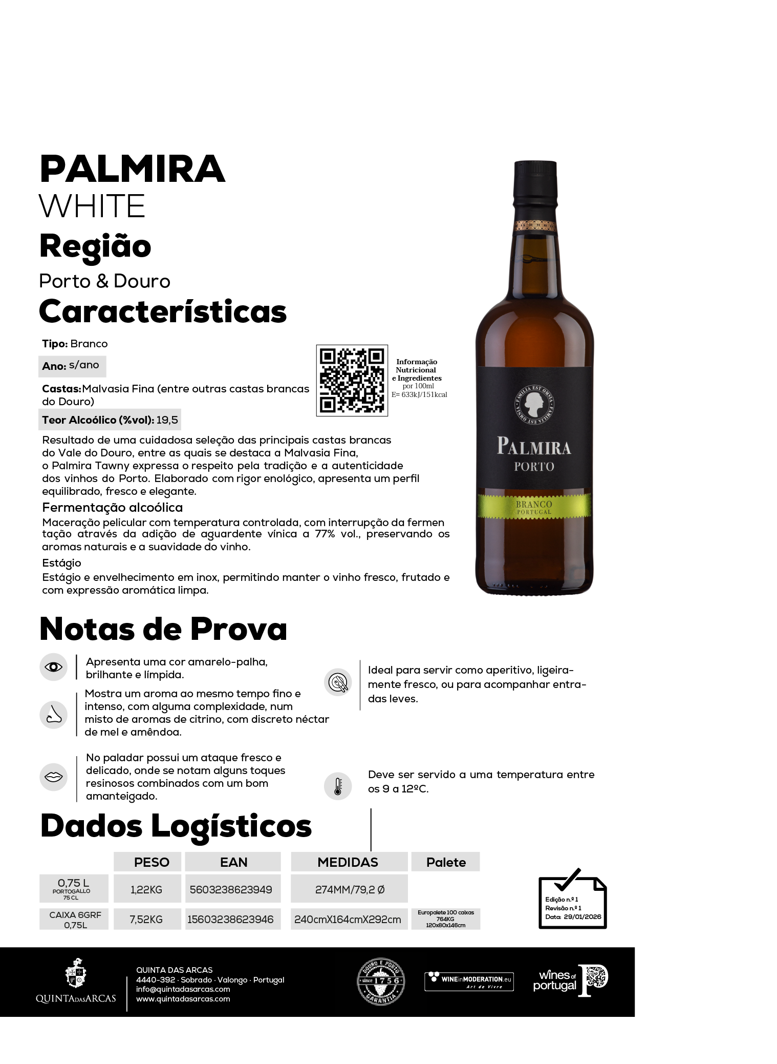 Resultado de uma cuidadosa seleção das principais castas brancas do Vale do Douro, entre as quais se destaca a Malvasia Fina, o Palmira Tawny expressa o respeito pela tradição e a autenticidade dos vinhos do Porto. Elaborado com rigor enológico, apresenta um perfil equilibrado, fresco e elegante.
