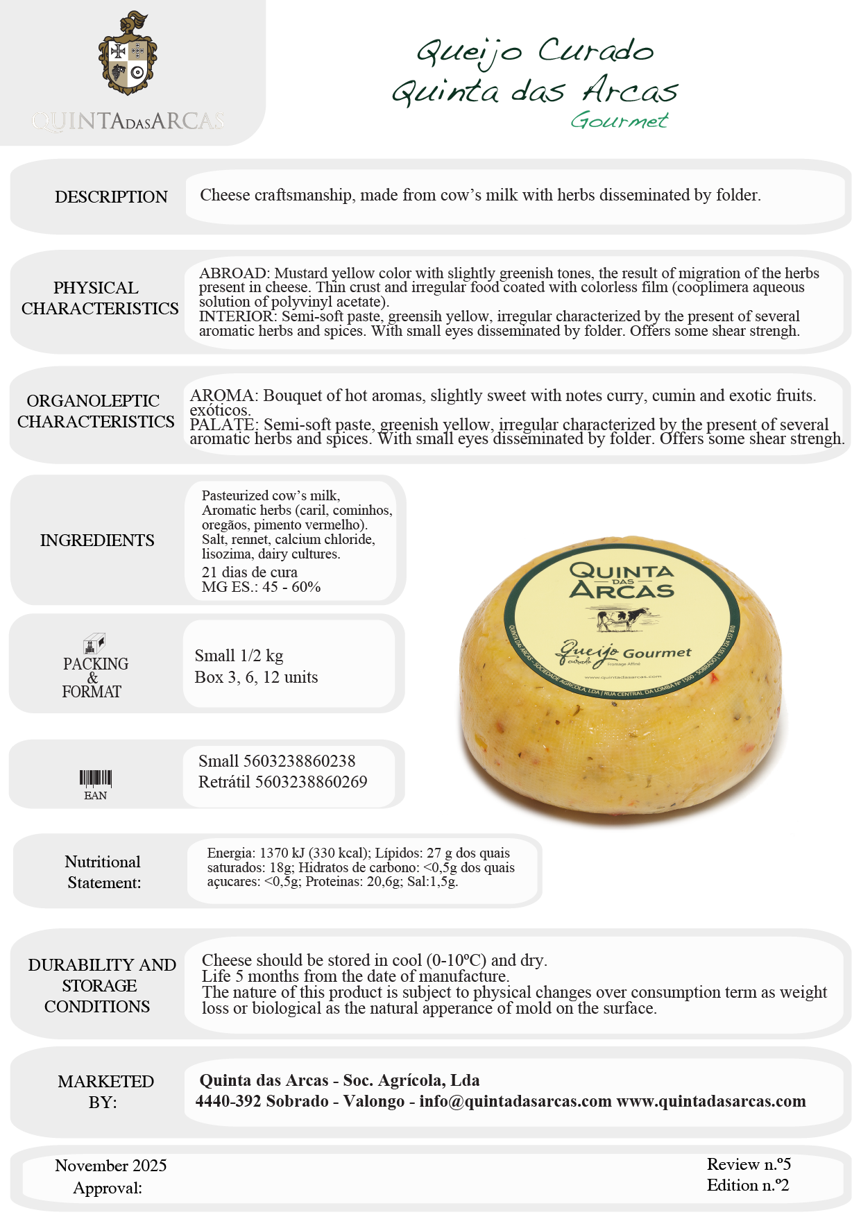 Quinta Das Arcas Light Cured Cheese